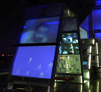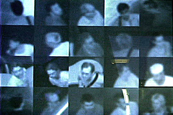 The work presents a series of people looking and being looked at, watching and being measured. The audience's feelings may alternate between sympathy and suspicion as they realise that they are not only witnesses to, but also subjects of, the system's activities. (Next)